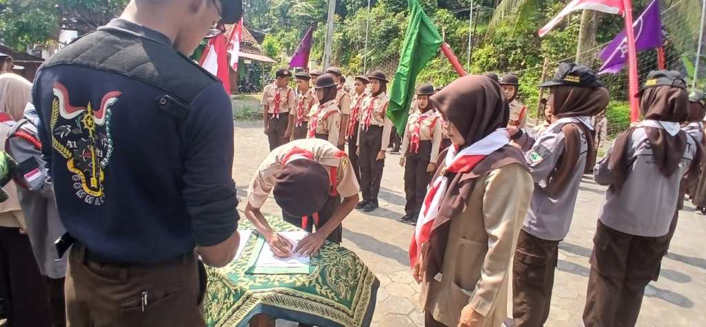Kaligowong, 17 April 2026 — Pergantian kepemimpinan dalam organisasi kepramukaan kembali berlangsung di MTs Ma’arif Kaligowong. Melalui upacara resmi yang digelar di lapangan madrasah, Dewan Penggalang Gugus Depan XI.01.123/01.124 masa bakti 2026/2027 secara sah dikukuhkan, menandai dimulainya babak baru kepemimpinan siswa di lingkungan madrasah.