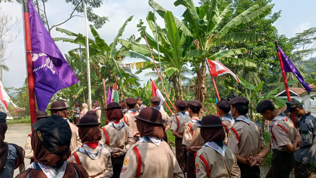 Rangkaian kegiatan dilanjutkan dengan penghormatan kepada Sang Merah Putih dan menyanyikan Hymne Pramuka. Momen tersebut menjadi simbol peneguhan nilai-nilai kebangsaan dan semangat kepramukaan yang terus ditanamkan kepada para siswa.